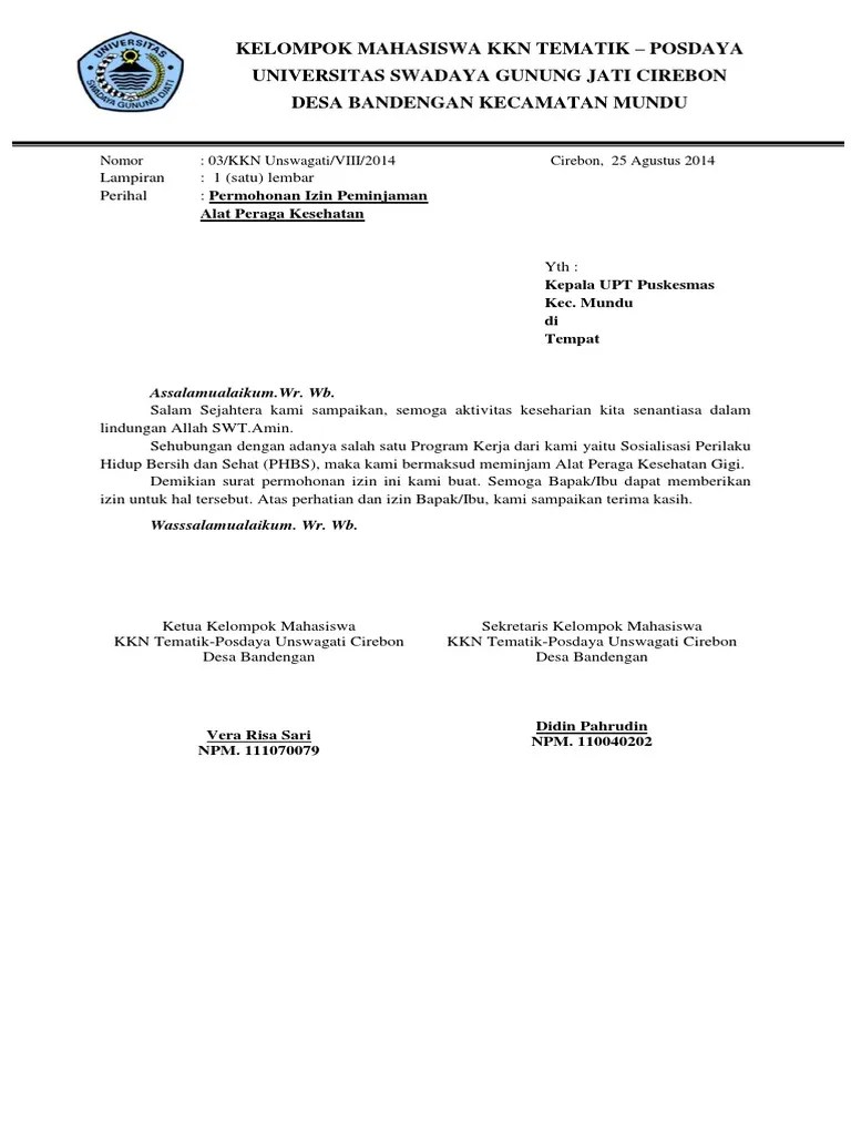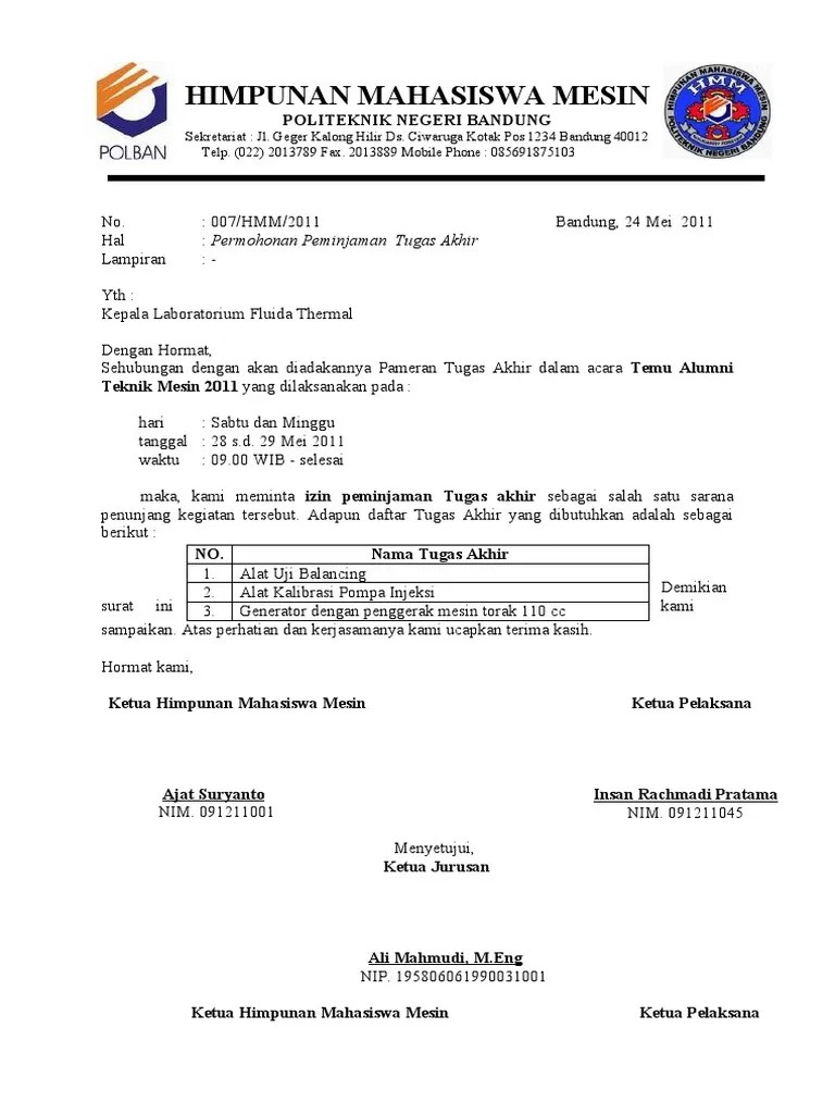 contoh surat peminjaman barang kegiatan kampus.